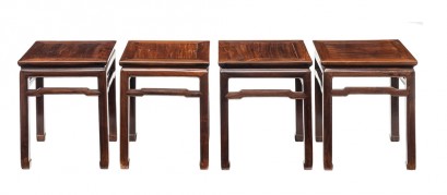 Lot Description:A set of four heavy Chinese hardwood stools, Qing Dynasty, 19th century