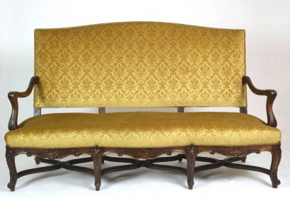 Lot Description:A Regence style carved walnut and upholstered settee, French, circa 1890