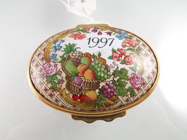 in the form of an oval snuff box decorated with flowers and with the legend 'a year to remember' to the inside of the hinged lid; a memento of the hubris of youth's flowering and the beckoning promise of a road yet to be travelled. -