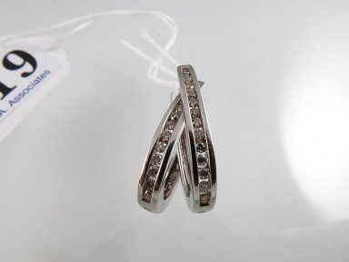 each channel-set with a row of TLB brilliant-cut diamonds; 9ct white gold. Estimated weight of diamonds 26 = 0.33ct. Total wt 4.7g. -