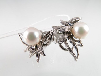 Lot #306 - A Pair of Cultured Pearl Floral Earrings