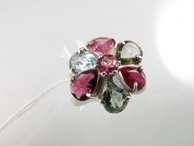 Lot Description:A Seven-Stone Gemstone Cluster Ring