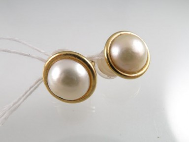 Lot #369 - A Pair of Round Mabe Pearl Ear-Clips