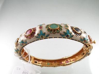 Lot Description:A Gemstone, Enamel And Silver-Gilt Hinged Bangle