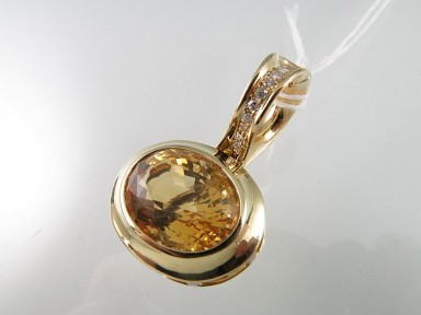 with anoval citrine and 11 diamonds in 18ct gold. Wt 18.1g. -