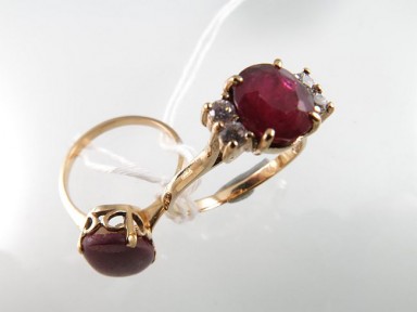 Lot #414 - Two Red Stone And 9ct Gold Rings