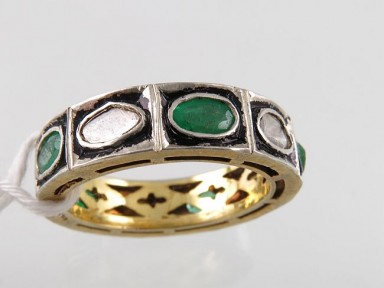 with five emeralds and five foil-back diamonds in silver-gilt. -