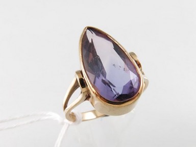 with a drop-shape amethyst in 9ct gold. Wt 4.2g. -