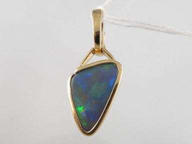 ENHANCER/ with a triangular free-form opal rim-set in 18ct gold. Wt 2.6g. -