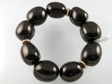 Lot Description:A Jet And 14ct Gold Rondel Bracelet