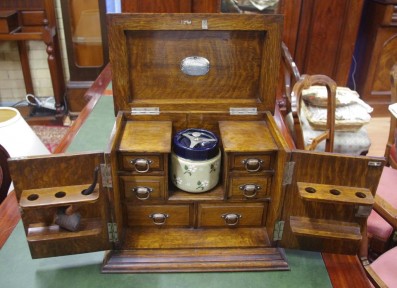Lot #1268 - Vintage oak smoker's cabinet