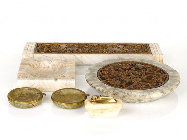 comprising marble and gilt metal ashtrays and lighters (6) -