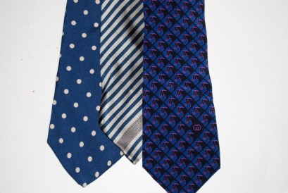 together with a Harvey and Hudson, London blue polka dot tie and an unmarked silk striped tie (3) -