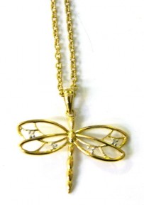 A 9ct yellow gold butterfly pendant with four round brilliant cut diamonds, 0.02ct in total and chain. Length 45cm -