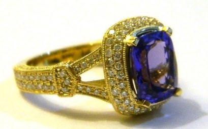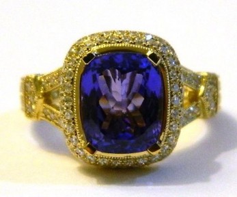 18ct yellow gold with one tanzanite 3.75ct and 178 round brilliant cut diamonds 1.04ct -