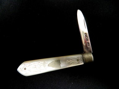 Lot Description:An English Sterling Silver & Mother of Pear Fruit Knife, Sheffield, 1916, maker C.W.F
