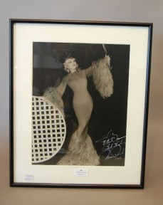 Lot Description:Framed Mae West in feathered gown signed studio photograph