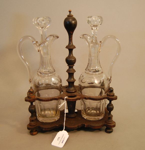 Lot #175 - Antique French cut glass double oil bottles
