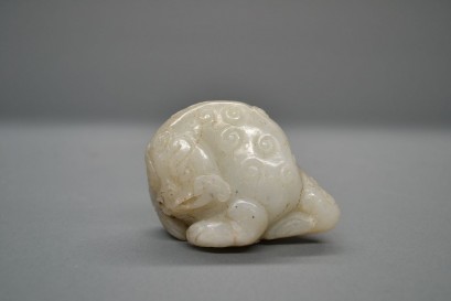 Lot Description:Fine Chinese carved white jade recumbent mythological animal