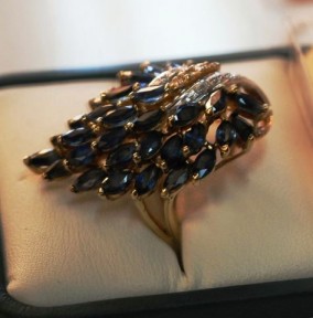 Lot Description:14ct yellow gold sapphire & diamond set ring