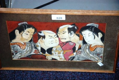 Lot Description:Antique Japanese painting on silk of 4 figures,