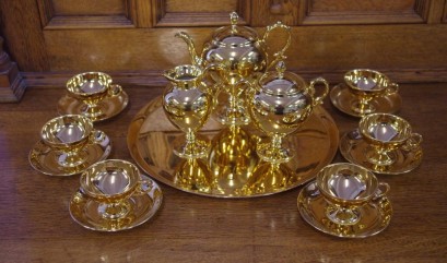 comprising of a coffee pot, milk jug, sugar bowl, round tray and 6 cup/saucers -