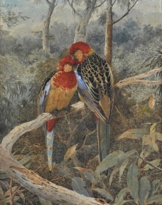 Nesting Pair of Rosellas in a Bush Landscape, 1889.