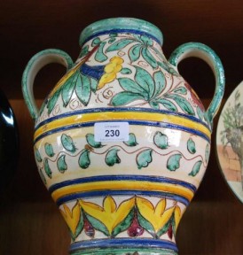 double handled with colourful glaze inscribed decoration, signed to base, L.D.B. & Co, height 30cm -