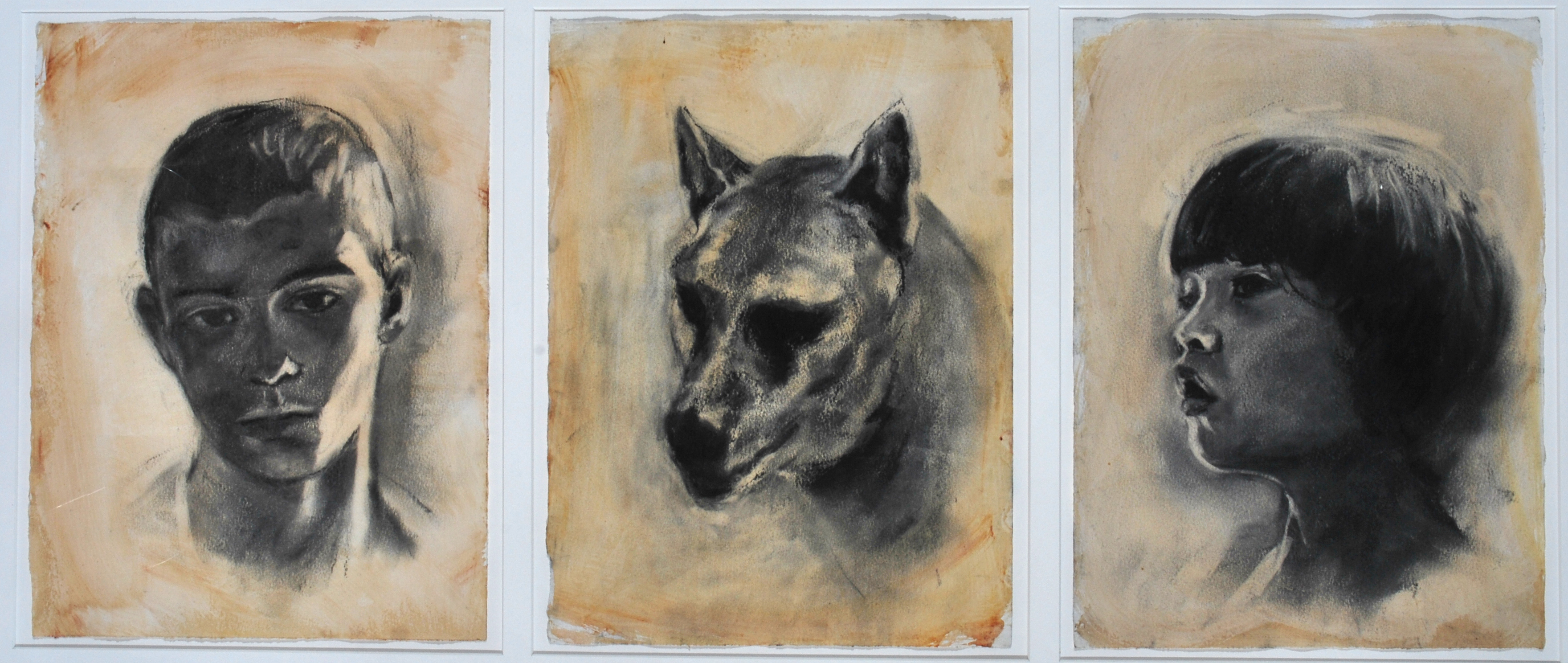 Group of three studies i)Young boy ii)Young Girl iii)Dog