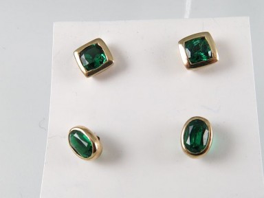 each set with a man-made emerald. (2) Total wt 2.4g. -