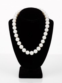 a single row of slightly button shaped freshwater pearls on an 18ct yellow gold ball style clasp -