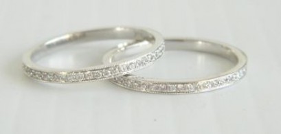 Each band with twenty six round brilliant cut diamonds, 0.26ct in total, mounted in 18ct white gold. Total weight 3.6grams