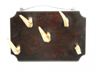 Lot Description:A Warthhog whip rack, mounted on an oak backboard