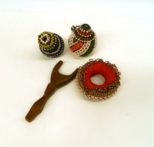Including 2 Beaded Lime Gourds, Beaded Pot Ring & Carved Wood "SlingShot" With Face -