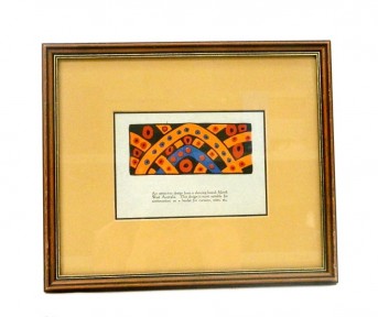 References:"The 1925 Aboriginalised designs evidenced stylistic similarities with the geometric products of modernist cooperatives .....Her reading of Taphoglyph forms as 'only carvings on the rough bark, and so leave the designer a wide field in colour', allowed her to modenrise and Europeanise her designs with unmodulated primary colours" Edwards,D & Peel R. Margaret Preston AGNSW, 2005 p102-103
