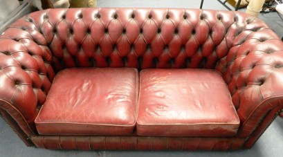 Lot Description:A burgundy leather two seater button back Chesterfield sofa