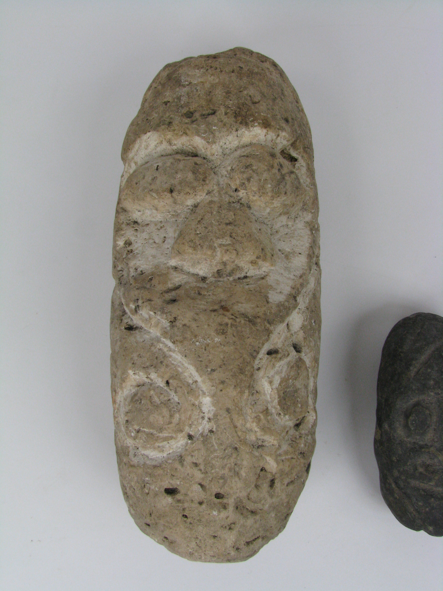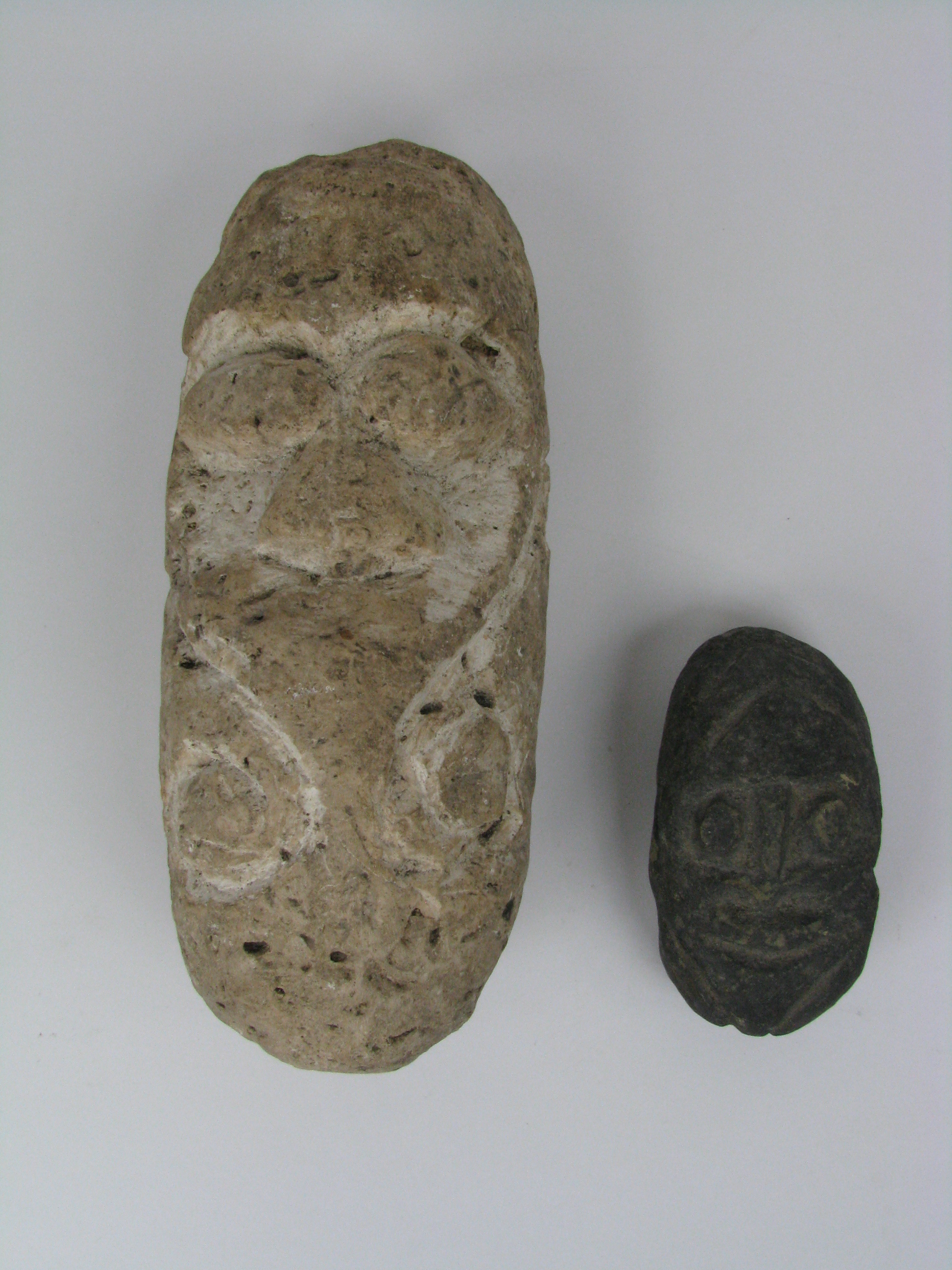 of stone, with classic ancestor visage in relief, Vanuatu, 10-22cm (2)