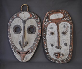 Relief carved with orange & grey ochre decoration. Washkuk.