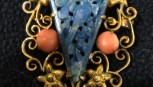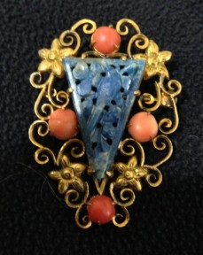 Lot #169 - A Sino Tibetan Lapis Lazuli, Coral and Gilt Mounted Brooch