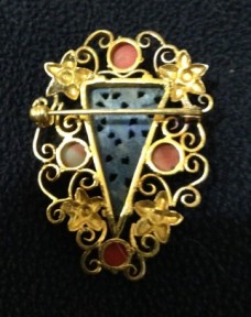 Lot Description:A Sino Tibetan Lapis Lazuli, Coral and Gilt Mounted Brooch