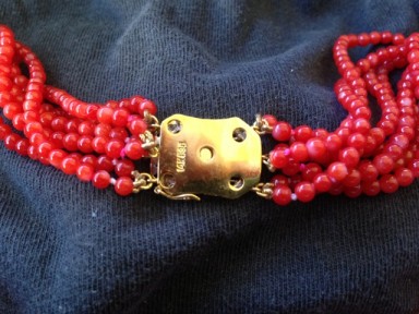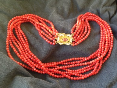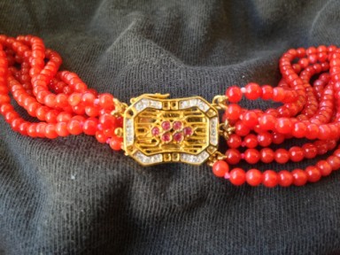 Lot #210 - A Chinese 14 Carat Diamond ,Ruby Mounted Coral Beaded Choker