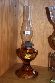 Lot #403 - Vintage pressed amber glass oil lamp with Greek key design