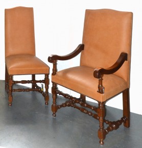 Lot Description:Eight Leather Upholstered High Backed Baronial Chairs