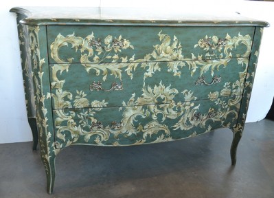 Lot Description:A French Three Drawer Bow Fronted Painted Commode