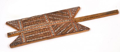 Striking And Rare Ceremonial Windcharm. Trapezoidal Showing Symmetry In Shape With Striking Sections Of Linear Line Work In Repetition To Both Sides W