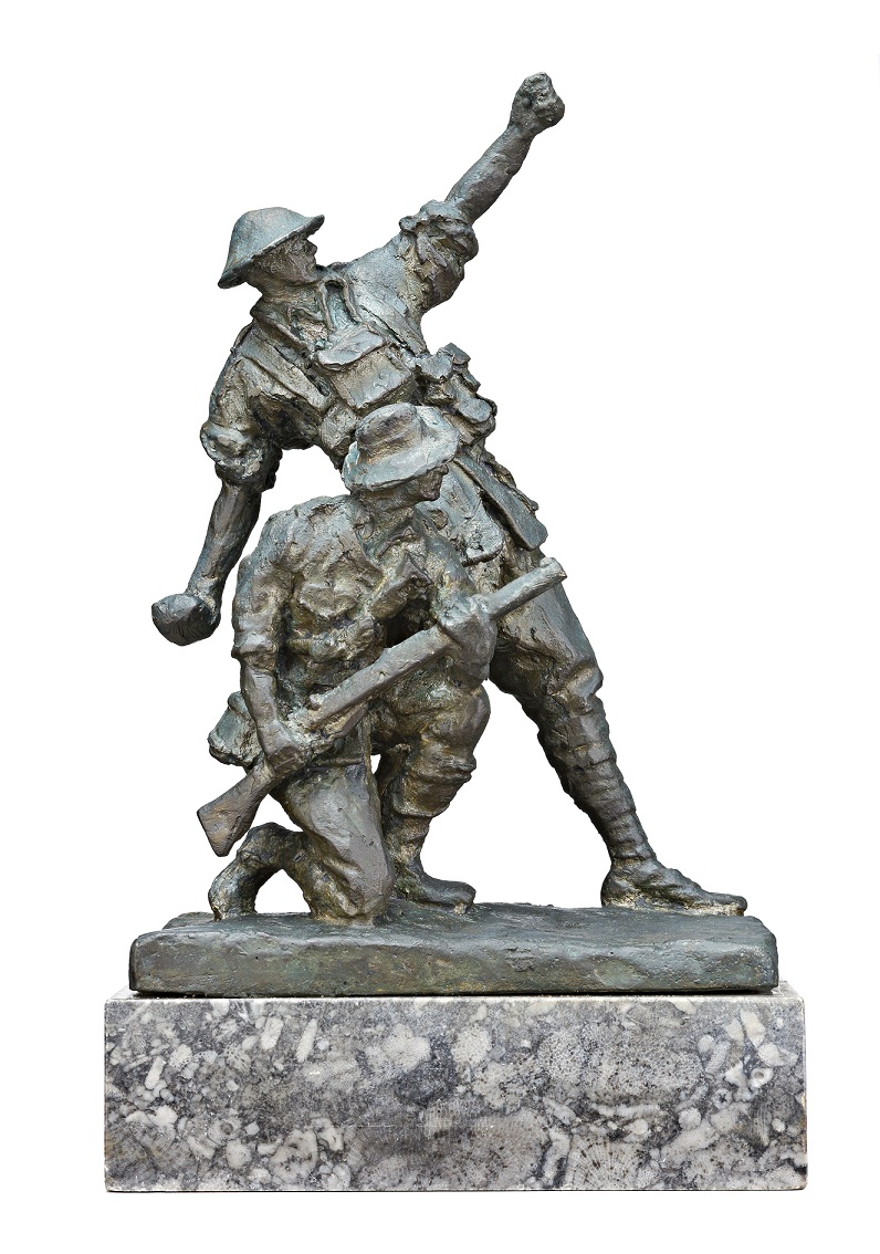 Notes:Cobbers, 1930, plaster, bronze patina, collection of the Australian War Memorial, Canberra; Cobbers, c1932-40, bronze, green patina, collection of the Australian War Memorial, Canberra. This is a bronze version of the original plaster sculpture of Cobbers held in the collection of the Australian War Memorial, Canberra. In 1932 Anderson approached the Australian War Memorial with the notion of producing copies of the plaster version to sell to the public. Later that year, Anderson agreed to sell the original work (and copyright) to the Memorial. The Memorial engaged Melbourne founder, E.J. Gregory, to cast the sculptures in bronze, which he did from a lead model. From 1932 to 1940, approximately 91 copies of Cobbers were cast. They were not editioned and were not numbered. This version is one of the 91 copies.