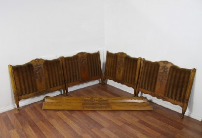 Each with ornately carved panels flanked by upholstered panels with shaped side rails. 83cm high, 101cm wide, 191cm long. -