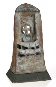 Stoneware Sculpture on a wooden plinth. Purchased Fletcher Brown Built Pottery Award