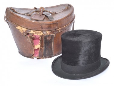 Lot Description:Black Top Hat In Brown Leather Case