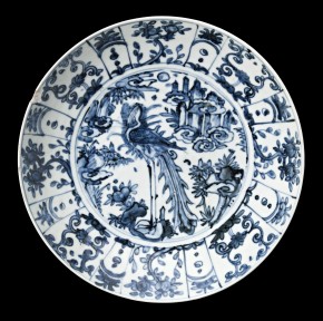 decorated with design of phoenix in garden surrounded by a band of floral motifs